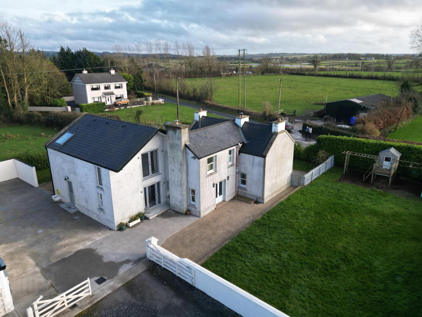 REA Seamus Carthy is delighted to present this immaculate and extended four-bedroom detached residence, perfectly situated on approximately 3.5 acres of scenic countryside. This traditional two-storey home has been finished to a high standard, offering a unique opportunity to enjoy a peaceful rural lifestyle without sacrificing modern convenience. Its prime location provides easy access to the bustling towns of Roscommon, Athlone, and Ballinasloe, making it an ideal choice for families and those requiring a dedicated space for remote work. The ground floor of this impressive property features a bright and well-proportioned layout, beginning with a welcoming entrance porchway that leads into two separate reception rooms a living room and a sitting room. The heart of the home is the spacious kitchen and dining area, complemented by a home office, a functional WC, and a standout feature utility room. Upstairs, the accommodation includes four bedrooms, with the master suite boasting its own walk-in wardrobe and ensuite bathroom. An additional snug provides a flexible living space, while a well-appointed family bathroom serves the remaining bedrooms. Externally, the property is a rare find for those with equestrian or hobbyist interests, featuring a purpose-built sand arena and three high-quality outbuildings. These versatile structures offer excellent potential for use as stables, storage, or workshop space. Combined with the land and private setting, this turnkey residence is a must-see for anyone seeking a quality family home in the West of Ireland. Immediate enquiries are highly advised for this property.