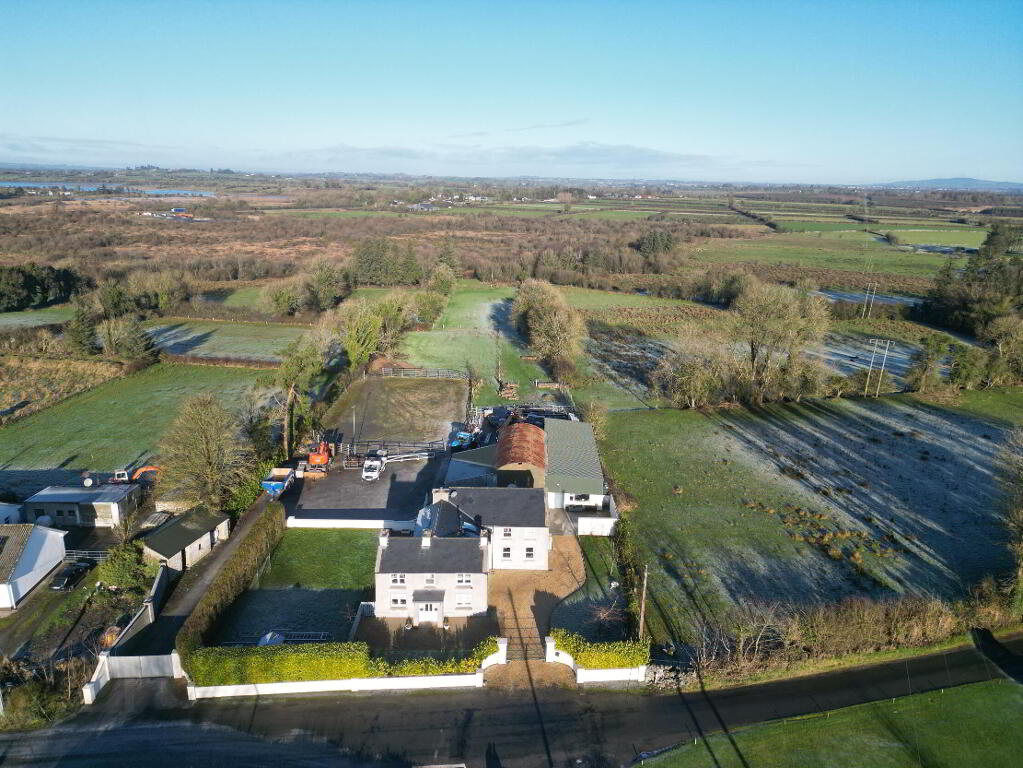 REA Seamus Carthy is delighted to present this immaculate and extended four-bedroom detached residence, perfectly situated on approximately 3.5 acres of scenic countryside. This traditional two-storey home has been finished to a high standard, offering a unique opportunity to enjoy a peaceful rural lifestyle without sacrificing modern convenience. Its prime location provides easy access to the bustling towns of Roscommon, Athlone, and Ballinasloe, making it an ideal choice for families and those requiring a dedicated space for remote work. The ground floor of this impressive property features a bright and well-proportioned layout, beginning with a welcoming entrance porchway that leads into two separate reception rooms a living room and a sitting room. The heart of the home is the spacious kitchen and dining area, complemented by a home office, a functional WC, and a standout feature utility room. Upstairs, the accommodation includes four bedrooms, with the master suite boasting its own walk-in wardrobe and ensuite bathroom. An additional snug provides a flexible living space, while a well-appointed family bathroom serves the remaining bedrooms. Externally, the property is a rare find for those with equestrian or hobbyist interests, featuring a purpose-built sand arena and three high-quality outbuildings. These versatile structures offer excellent potential for use as stables, storage, or workshop space. Combined with the land and private setting, this turnkey residence is a must-see for anyone seeking a quality family home in the West of Ireland. Immediate enquiries are highly advised for this property.